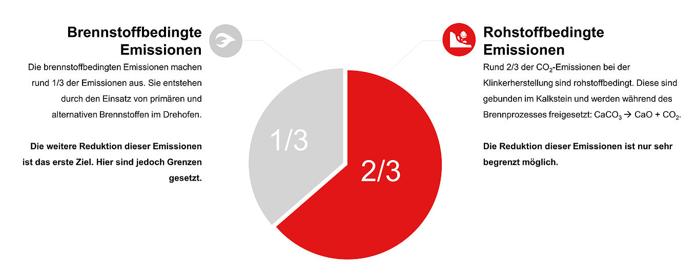 Untersuchungen aus verschiedenen Forschungsvorhaben zeigen, dass eine gewisse Menge Klinker im Zement immer erforderlich ist, um die Dauerhaftigkeits- und Festigkeitsanforderungen erfüllen zu können. Um dennoch die Klimaneutralität des Baustoffes Zement erreichen zu können, müssen die restlichen unvermeidbaren CO2-Emissionen im Klinkerherstellprozess anderweitig behandelt werden.