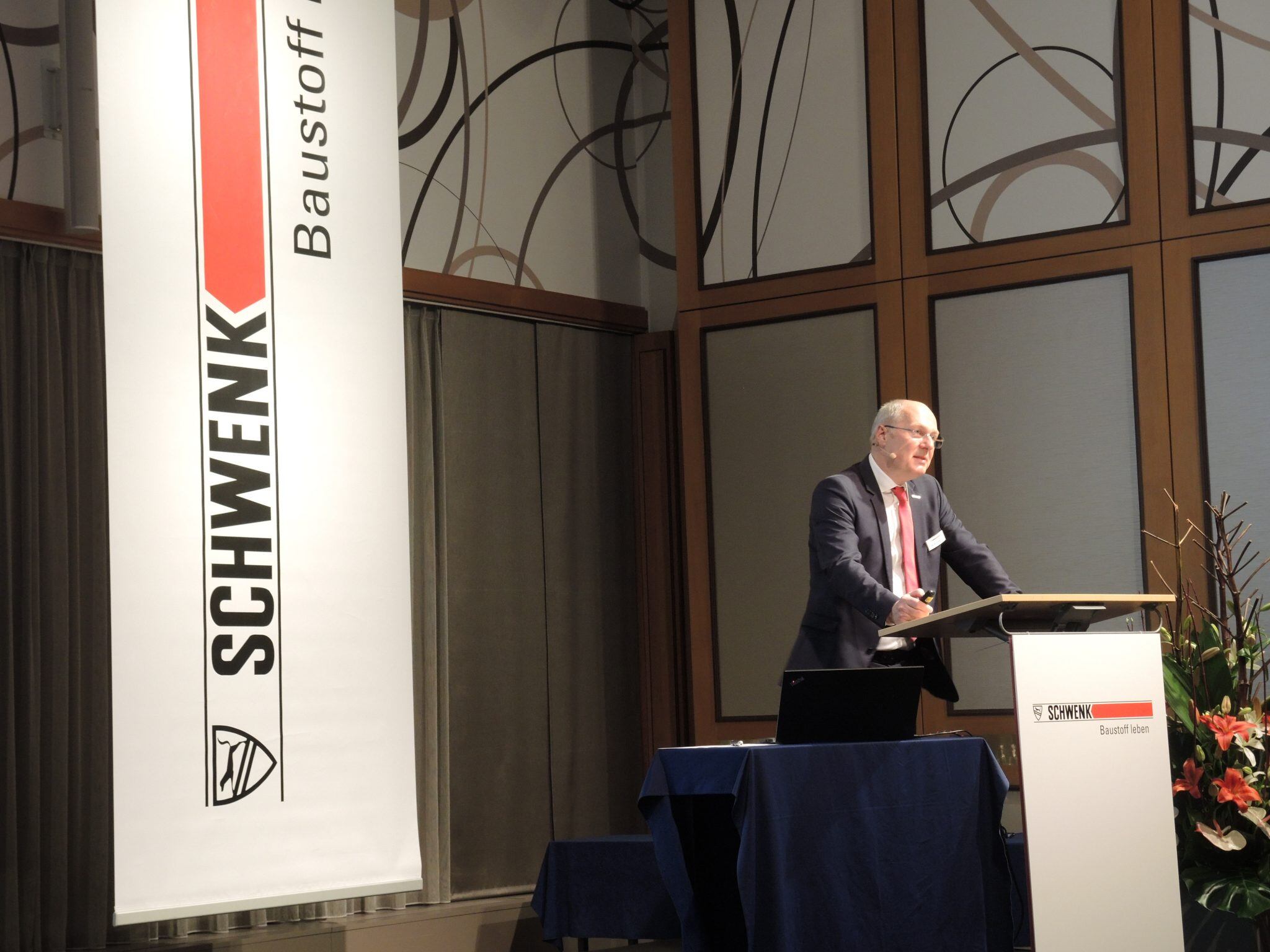 Die Begrüßung sowie den ersten Vortrag übernahm Dr. rer. nat. Hendrik Möller, Mitglied der Geschäftsleitung der SCHWENK Zement KG. Nach einem allgemeinen Überblick über die Konjunktur der Branche wurden Entwicklungen im letzten Jahr in Deutschland und bei SCHWENK dargestellt. Er stellte fest, dass auch nach Ansicht der führenden Wirtschaftsinstitute 2019 ein außerordentlich gutes Baujahr in Deutschland war. Die Bauinvestitionen sollen langfristig gesehen 2020 und 2021 auf hohem Niveau verbleiben. Bremsend wirkt sich der Personalmangel bei den planenden Behörden, Bauingenieuren und Fachkräften aus. Ein weiteres Hemmnis ist die regional unterschiedlich schwierige Verfügbarkeit von Gesteinskörnungen, während die Zementindustrie sich zunehmend mit einer kritischen Darstellung in den Medien konfrontiert sieht.