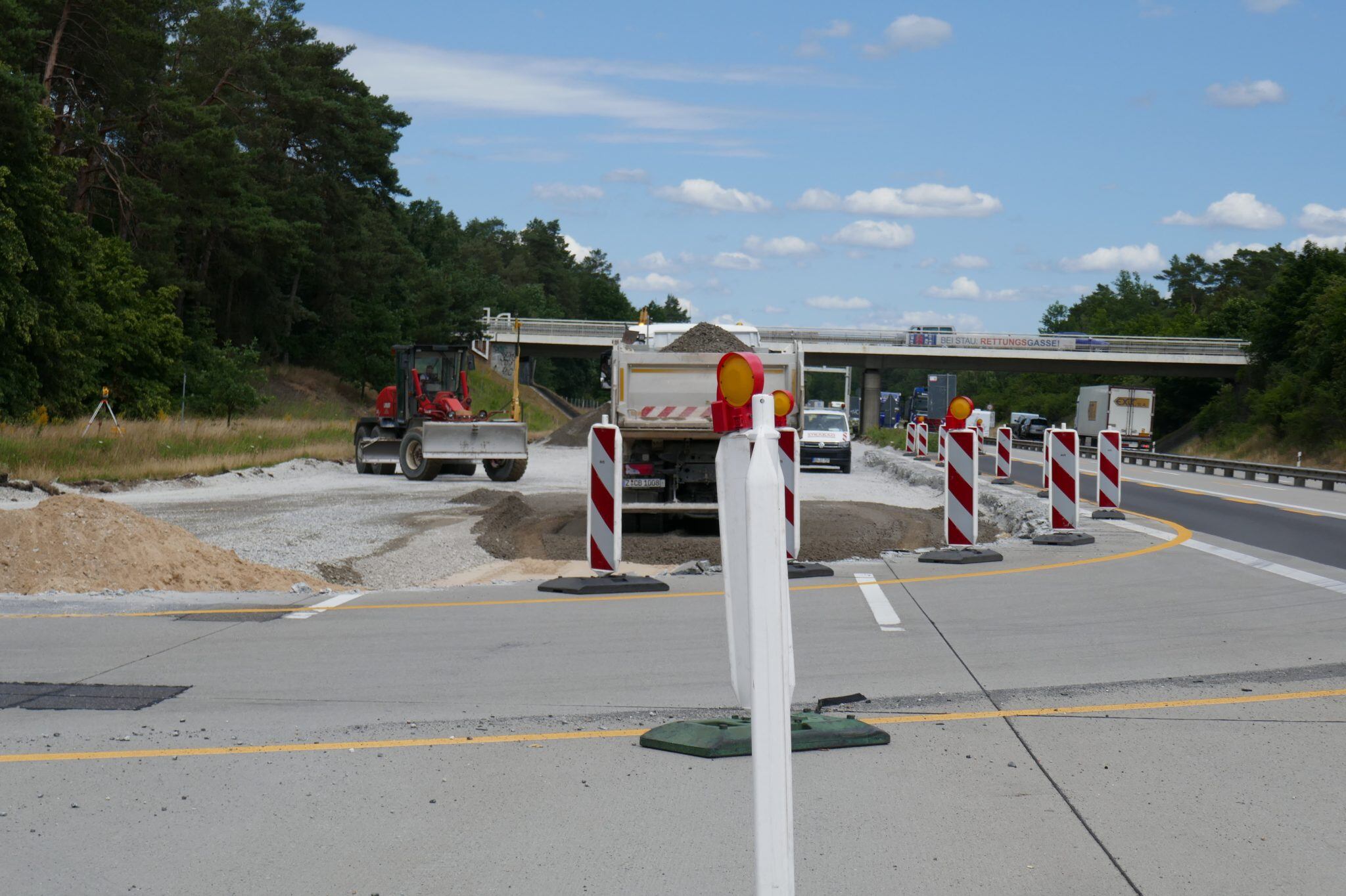 Nach den Betonarbeiten werden die Randbereiche aufgefüllt und verschiedene Restarbeiten (Leitplanken, Beschilderung etc.) ausgeführt.