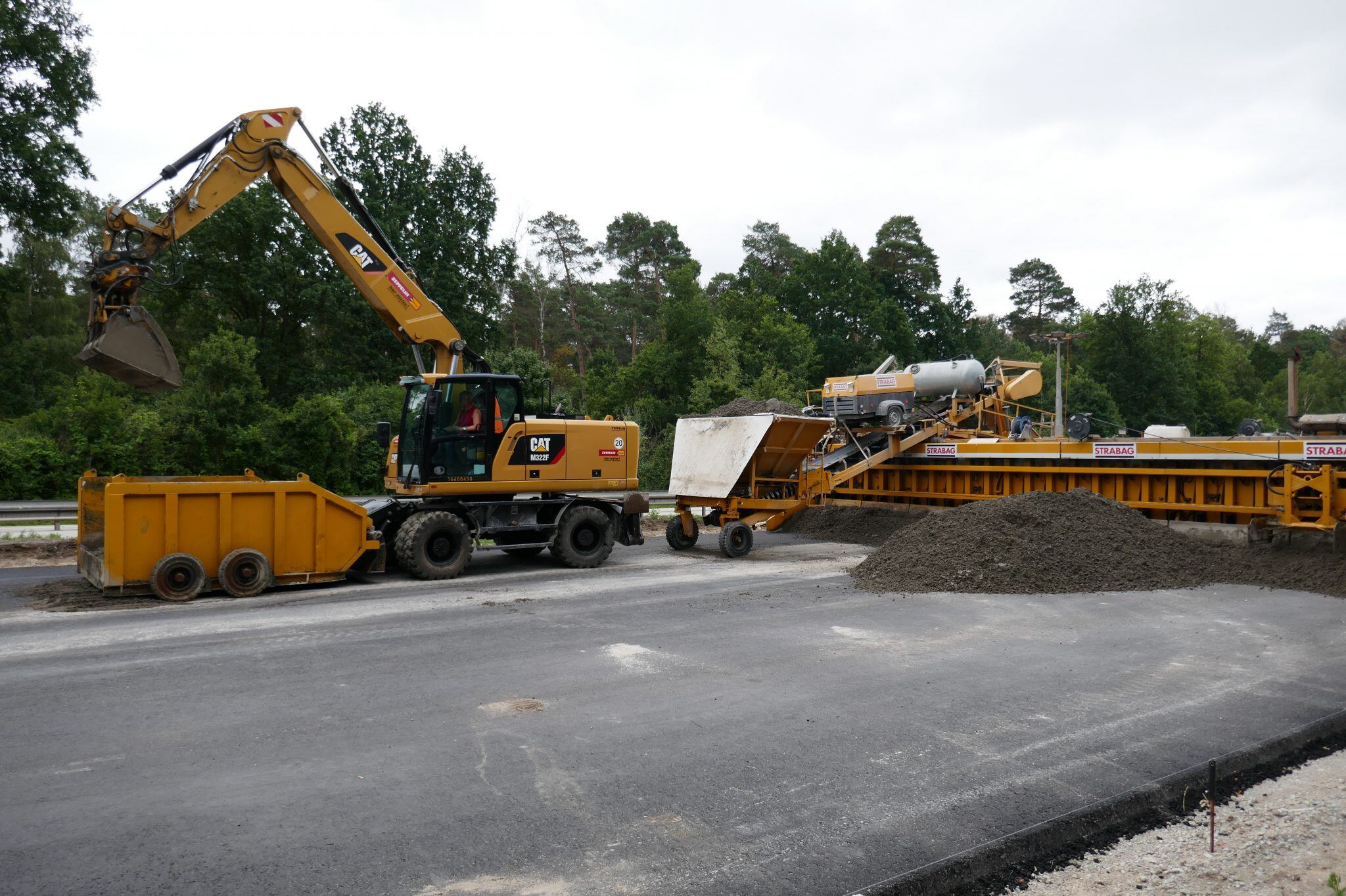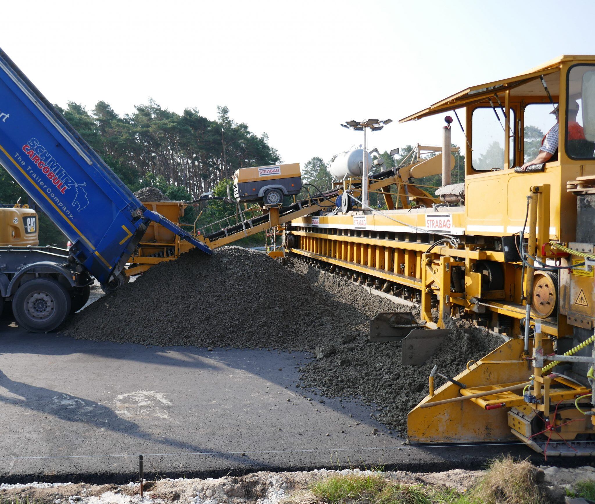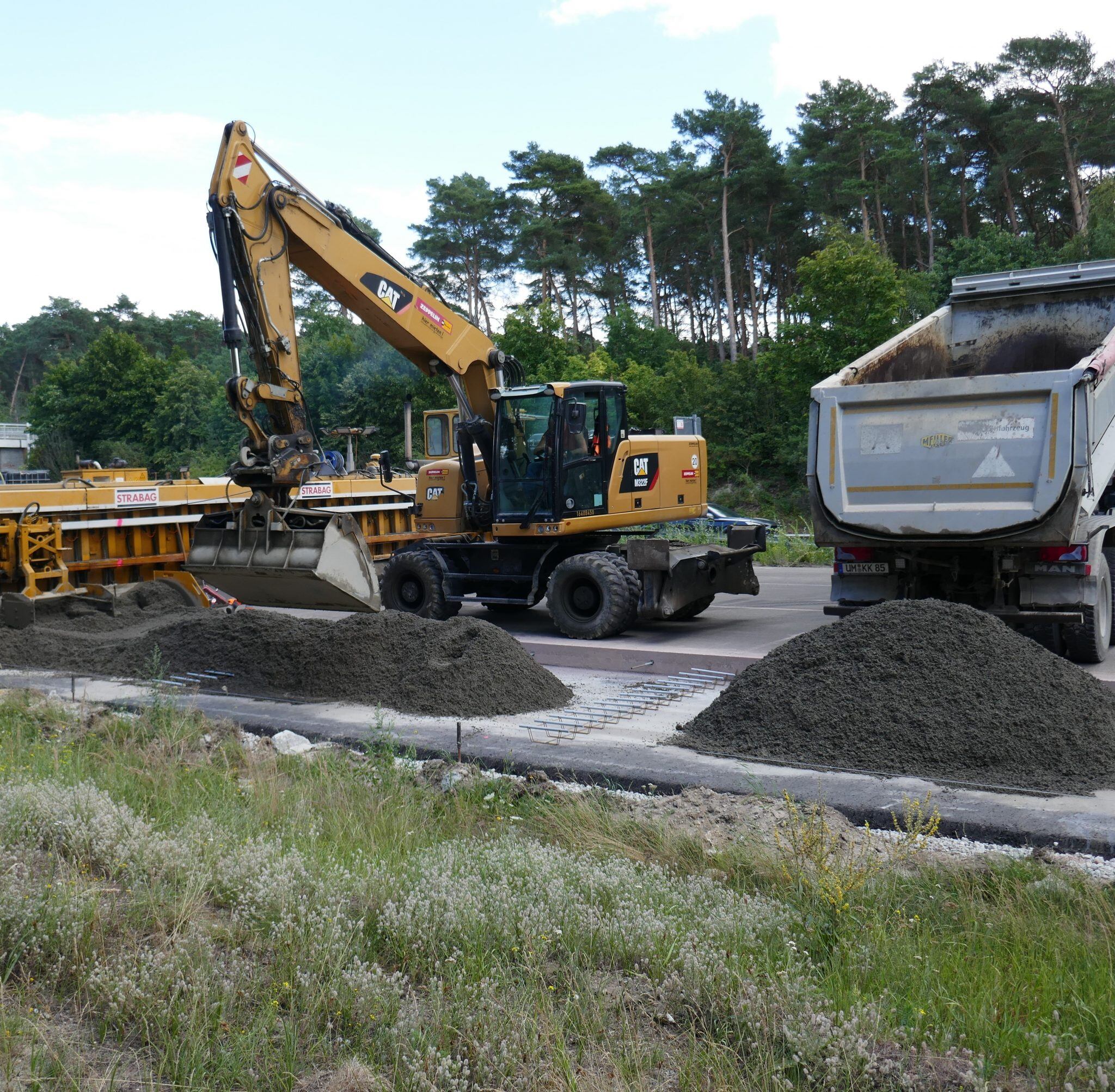 Im Vorfeld wurde der geschädigte Fahrbahnbeton aufgebrochen, abtransportiert und separiert gelagert. Das abgetragene Aufbruchmaterial wurde in der Nähe der Mischanlage mittels einer Recyclinganlage als Schottertragschicht 0/32 mm aufbereitet, sodass diese gemäß ZTV SoB-StB 07 und TL SoB-StB 07 mitverwendet werden konnte. Unmittelbar danach konnte der Unterbau vorbereitet und mit einer 10 cm Asphalttragschicht entsprechend den Vorgaben versehen werden.