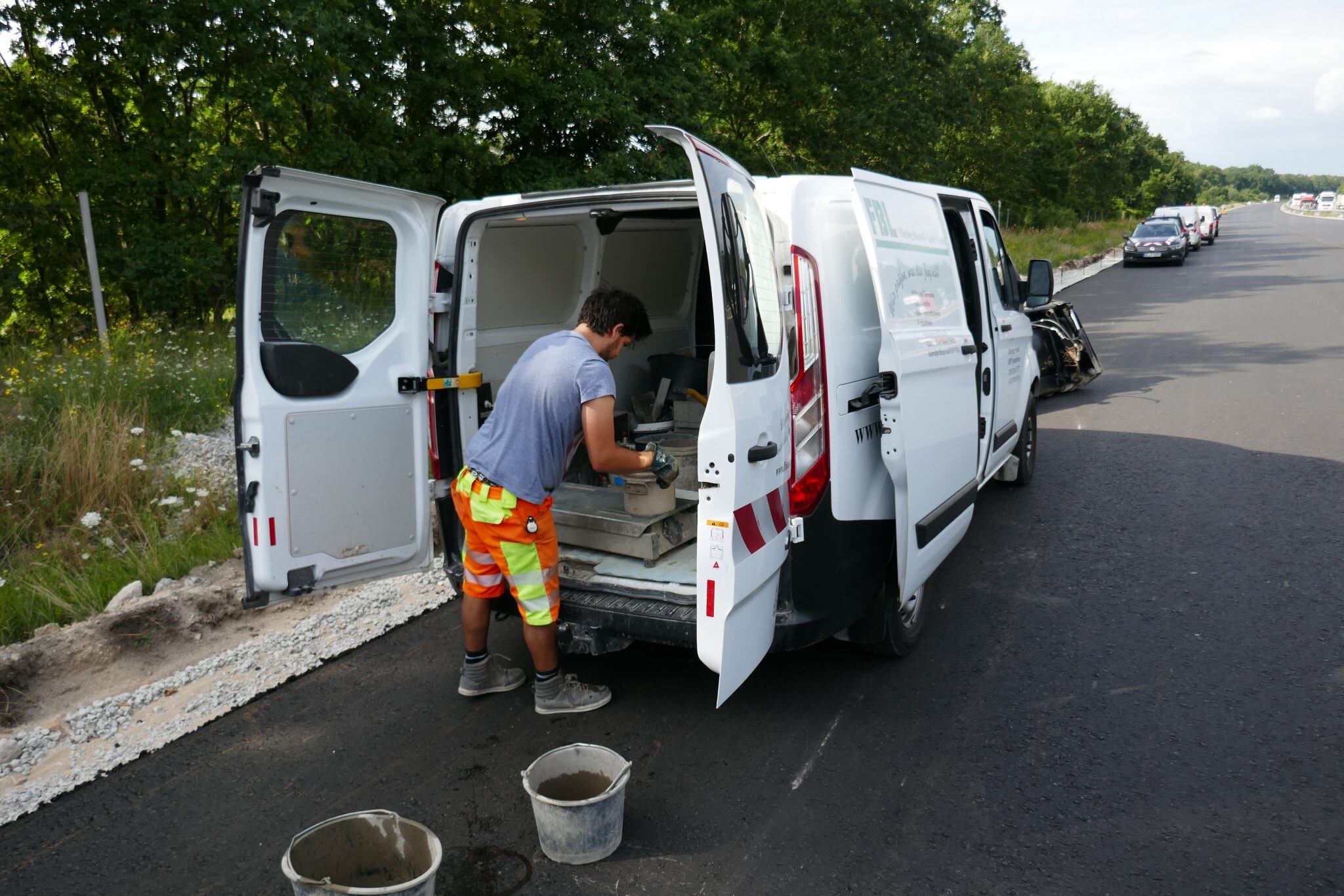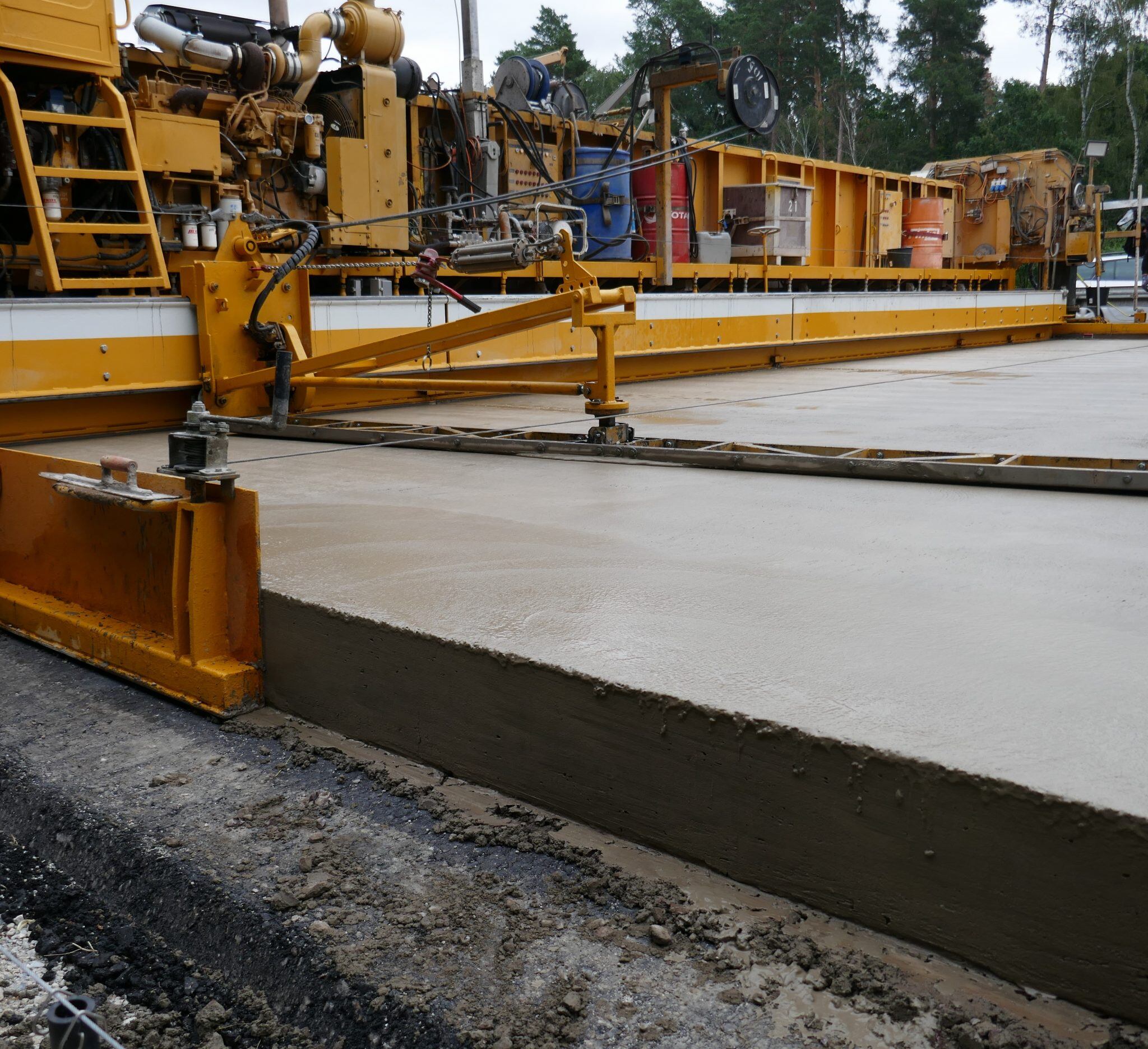 Die erforderlichen Zusatzmittel wurden von der Master Builders Solutions Deutschland GmbH aus Staßfurt geliefert. Hierbei handelte es sich um den Luftporenbildner „MasterAir 102“ als Konzentrat und das Fließmittel „Master Pozzolith 25E“. Beide Mittel entsprechen den Anforderungen der Alkali-Richtlinie, Abschnitt 7.1.3 (2) an das Na2O-Äquivalent ≤ 8,5 M-%. Für das Bauvorhaben kam der Zement CEM I 42,5 N (sd) als vielmals erprobter Straßendeckenzement der Firma SCHWENK Zement GmbH & Co. KG aus dem Lieferwerk Bernburg zum Einsatz.