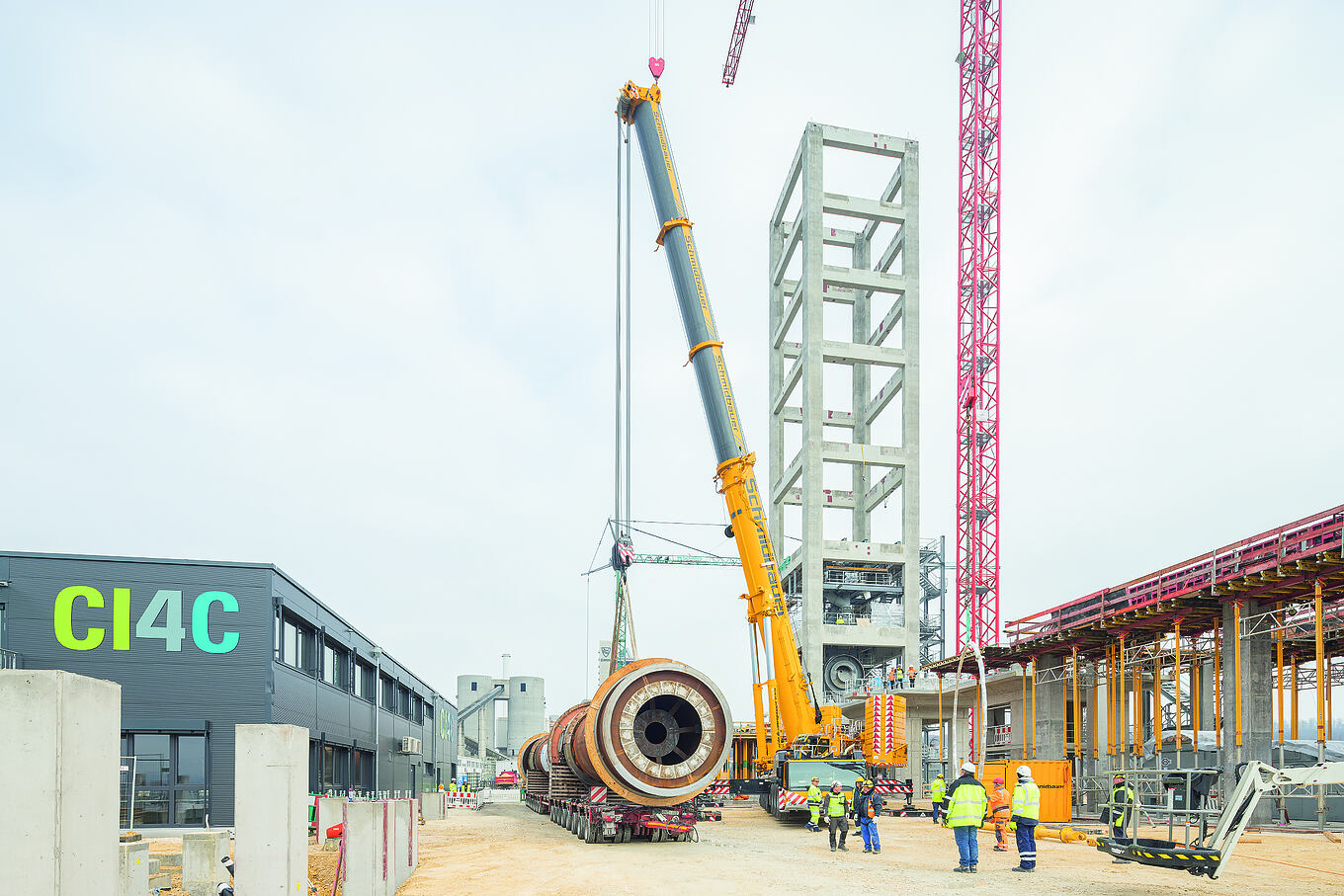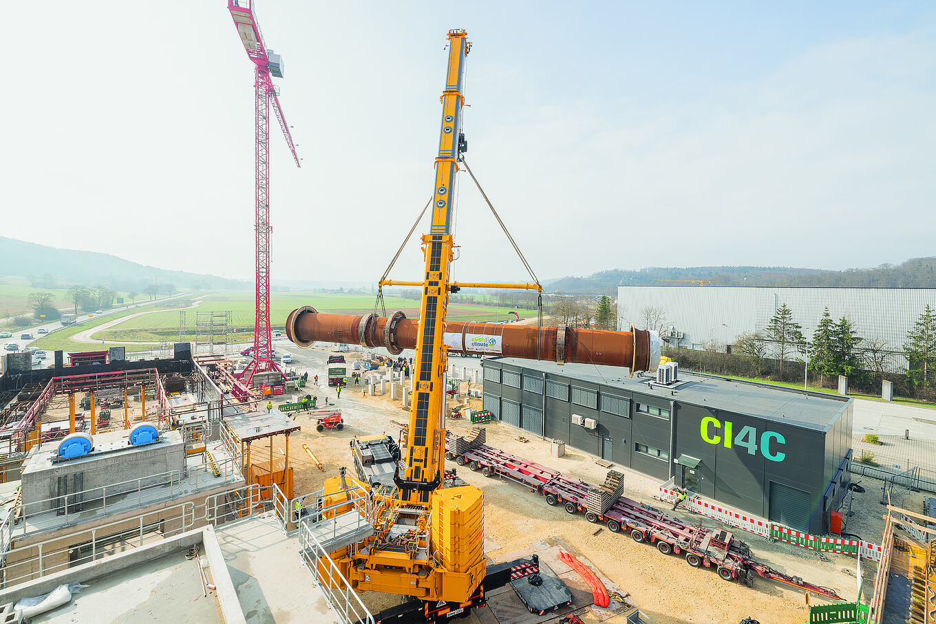 • Auf der Baustelle des CO2-Abscheide-Projekts „catch4climate“ wurde im März der Ofen montiert.