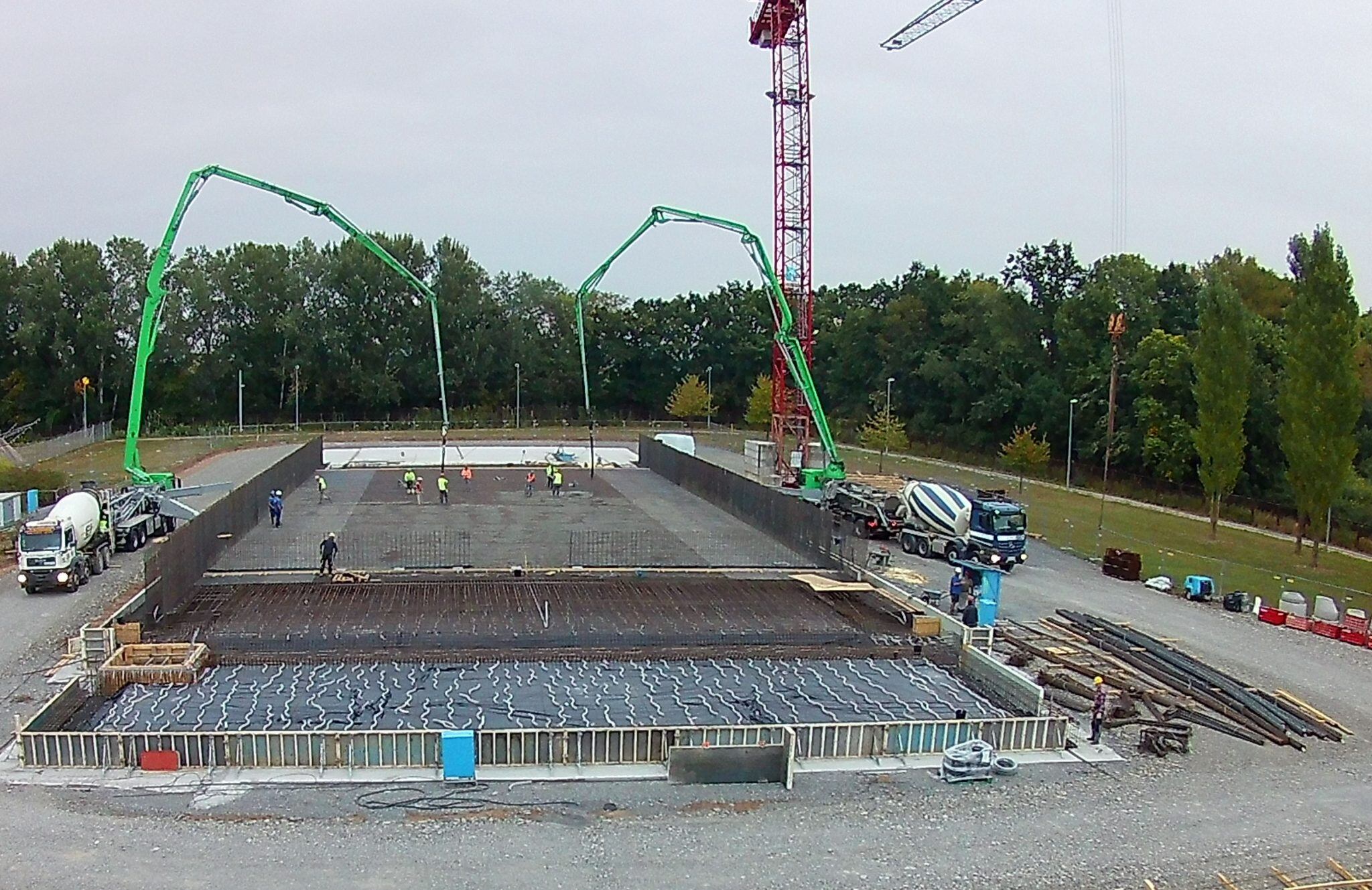 Die Bodenplatte wurde von der Firma Lux-Commerce Betonboden GmbH als Subunternehmer in drei Abschnitten ausgeführt.