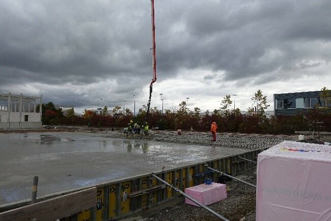 Die restlichen zwei Abschnitte der massigen Bodenplatte erfolgten Anfang November 2020.
