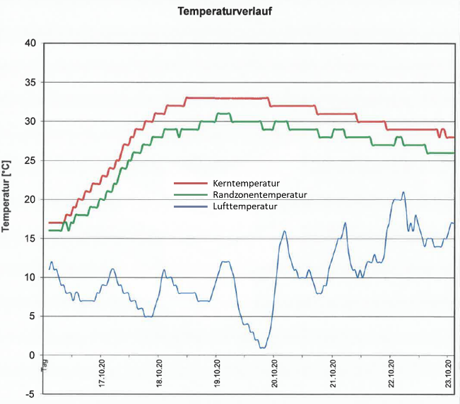 Das bedeutet, dass bei einer Frischbetontemperatur von 18 °C die maximale Temperatur im Kern