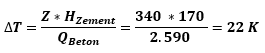 HZement = Hydratationswärme in kJ/kg zum Zeitpunkt der erwarteten maximalen Bauteiltemperatur (geschätzt 2 Tage)
