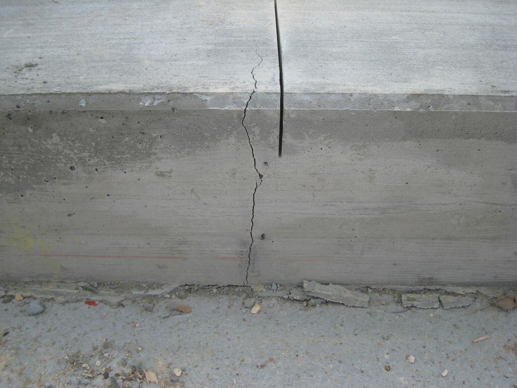 Das Schneiden der Fugen muss in Abhängigkeit der Festigkeitsentwicklung erfolgen. Dies kann schon nach wenigen Stunden der Fall sein. Zu langes Warten kann zu ungerichteten Rissen führen (Bild 5).