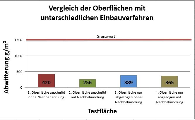 Der Glättvorgang hat keinen negativen Einfluss auf die Abwitterungsmengen. Einen größeren Einfluss scheint die Nachbehandlung zu haben.