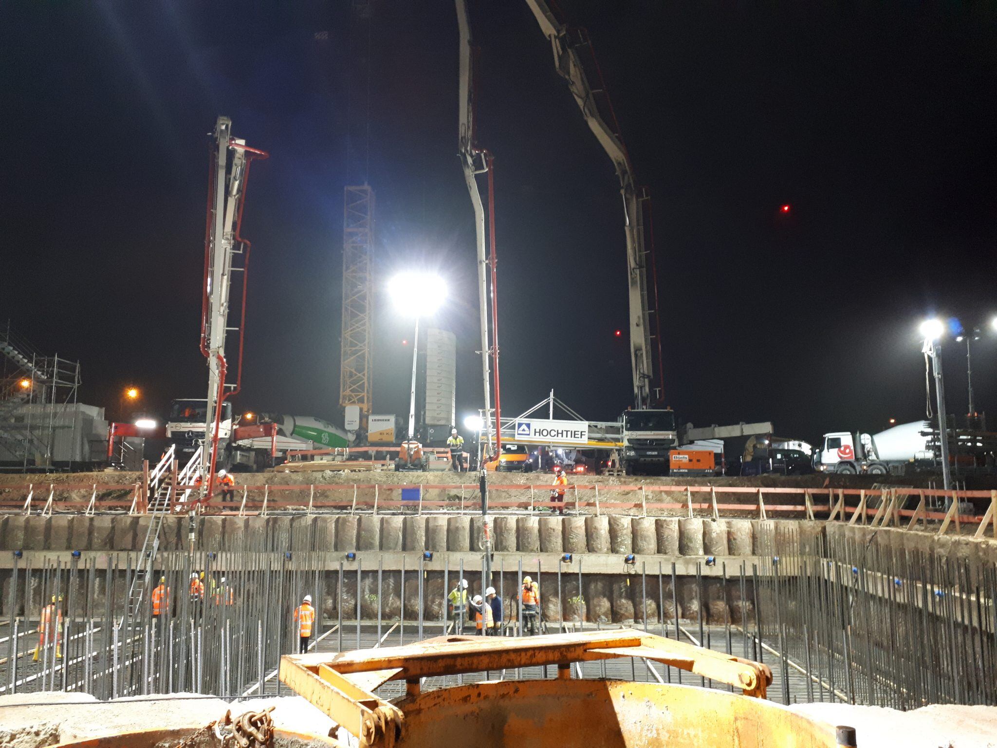 Abbildung 2: Betonage Ebene 1 der Pfahlkopfplatte bei Nacht ©SCHWENK Technologiezentrum
