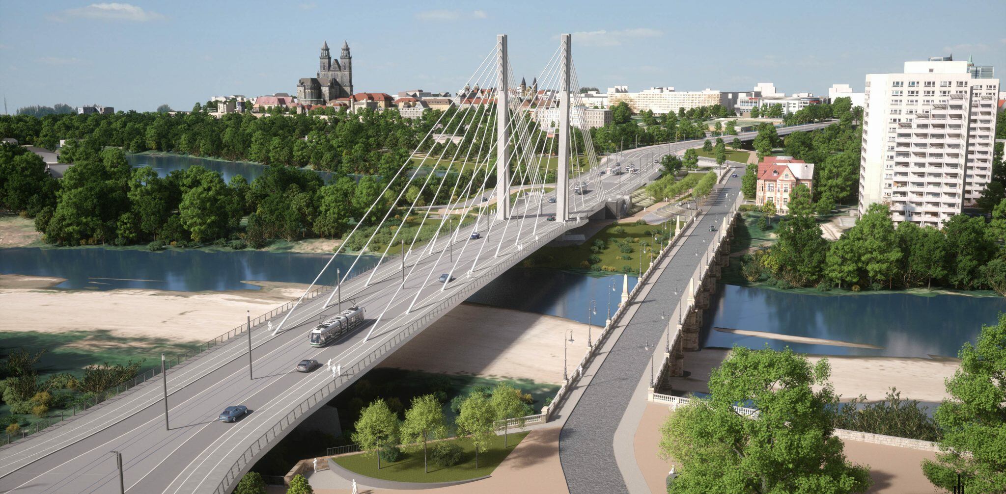 Am 24.02.2020 hat in Magdeburg, der Landeshauptstadt von Sachsen-Anhalt, offiziell der Bau der Strombrückenverlängerung begonnen. Bis 2023 soll der Elbübergang an der Johanniskirche in Richtung Osten der Stadt mit einer hochwassersicheren Pylonbrücke verlängert werden.