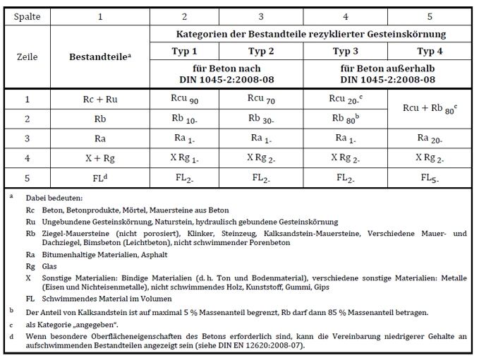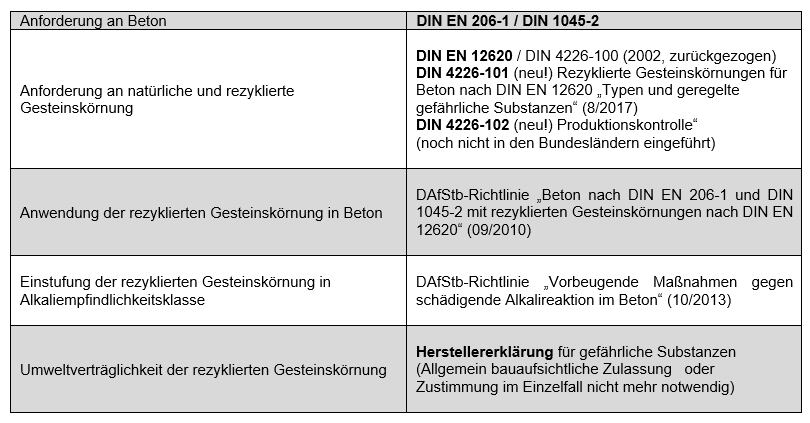 Tabelle 2: Auszug aus DAfStb-Rili „Beton mit rezyklierter Gesteinskörnung“