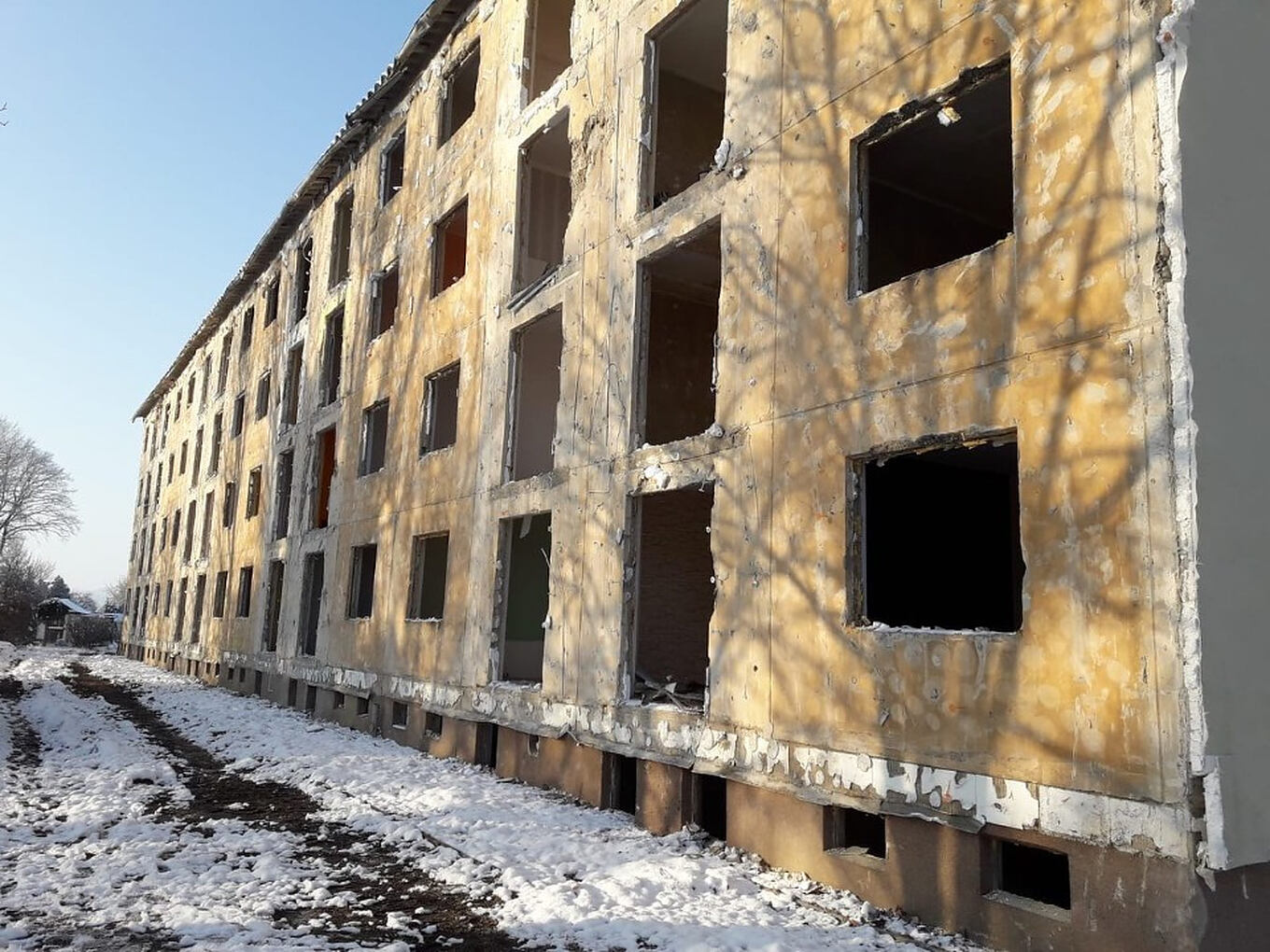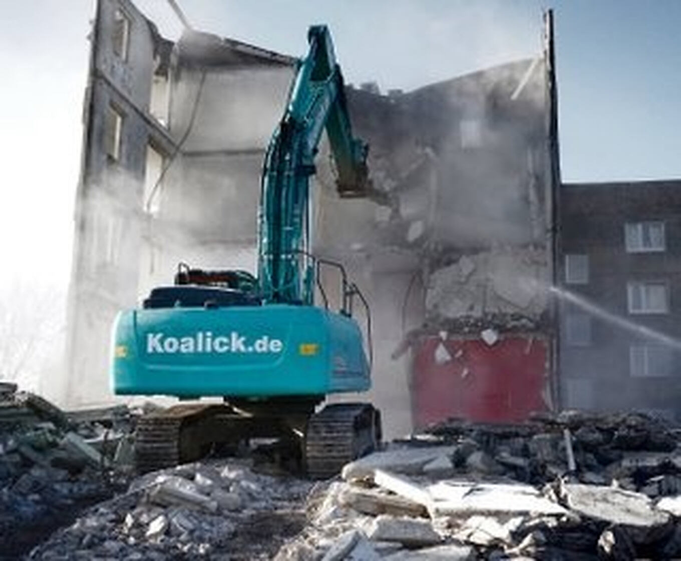 Aus dem Abriss von 2 ehemaligen Wohnblöcken der Stadt Guben nahm SCHWENK bereits im Dezember 2021 und Januar 2022 ca. 10.000 Tonnen Abbruchmaterial an. Der Abbruch und Transport des Materials erfolgte durch die Firma KOALICK Beton GmbH aus Drebkau.